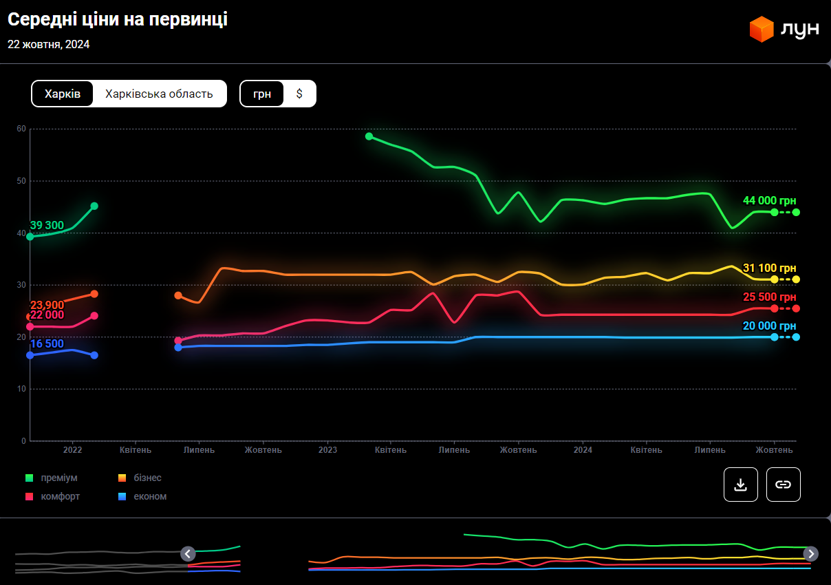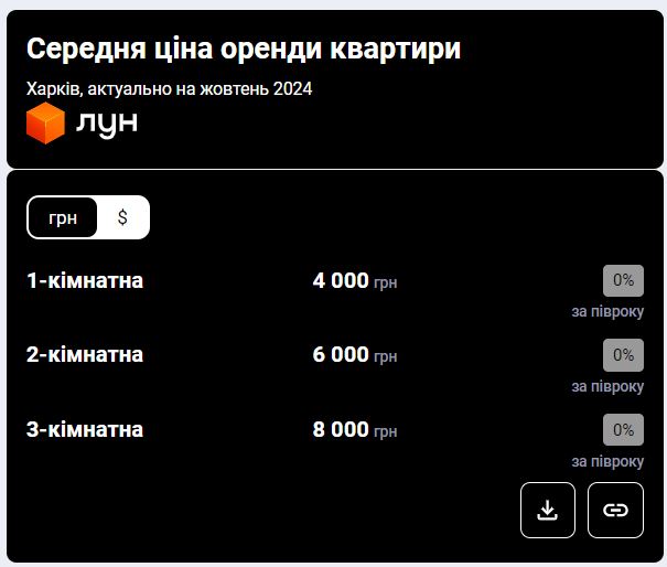 Ціни на оренду житла у Харкові (скриншот сайту ЛУН)