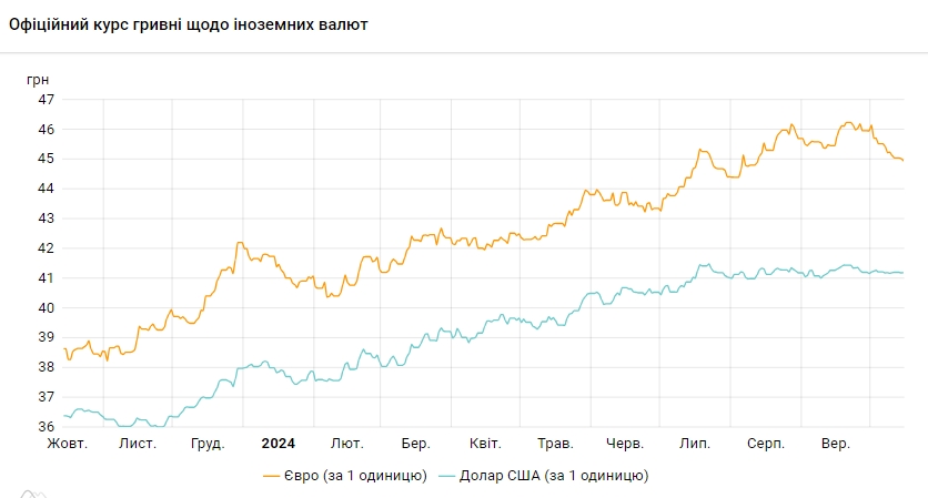 Офіційний курс на 15 жовтня 2024 року встановлено на такому рівні: 41,1963 грн за 1 долар (+0,0072 грн).