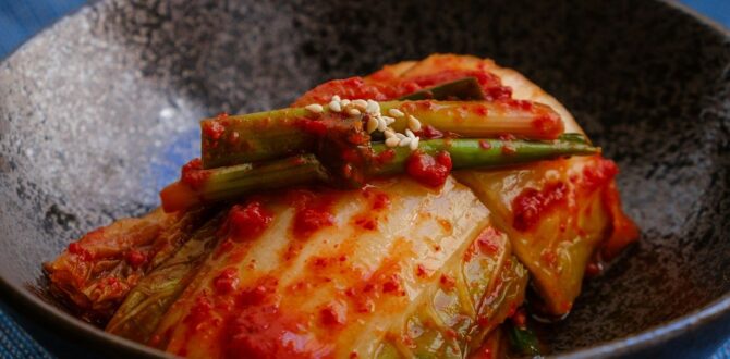 Традиційна корейська страва з ферментованих овочів — зазвичай пекінської капусти з часником і спеціями. Під час правильного приготування корисні бактерії активно розмножуються, пригнічуючи патогени.