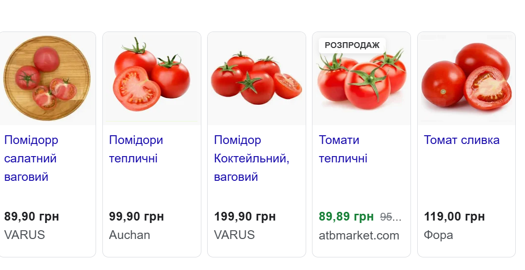 Ціни на помідори в супермаркетах (скриншот google.com)