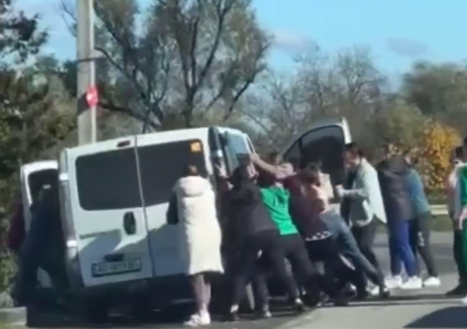 Уточнюється, що після того, як бус представників ТЦК почав рухатись, щоб поїхати, жінки почали кидати по ньому камінням.
