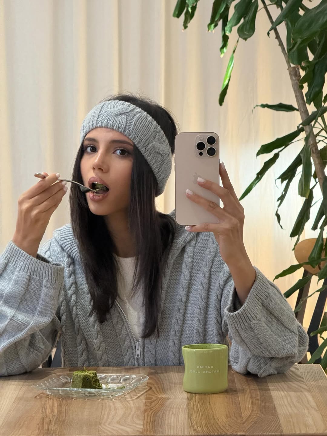 Софія Шамія наочно демонструє, як носити трикотажний сет у форматі out and about – для кави в місті, прогулянок або неформальних зустрічей.