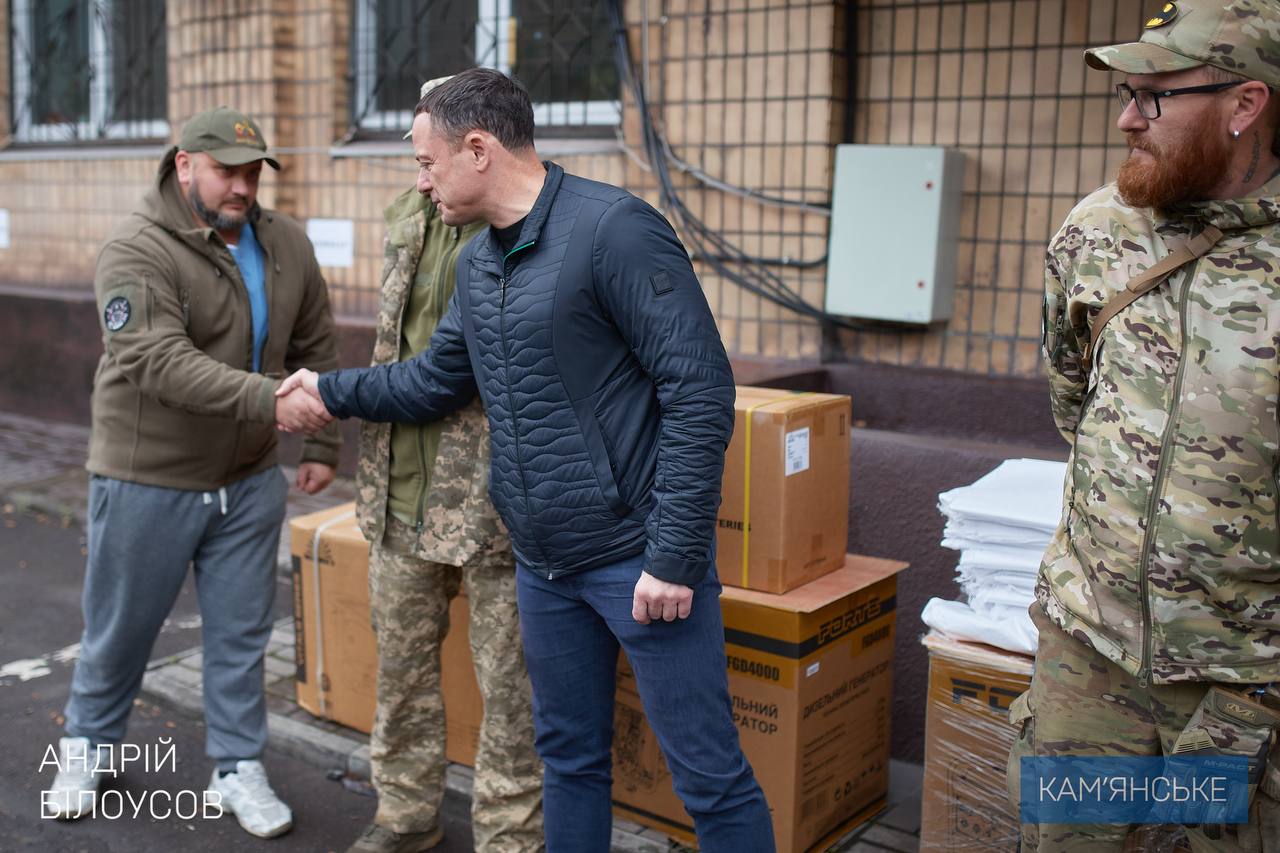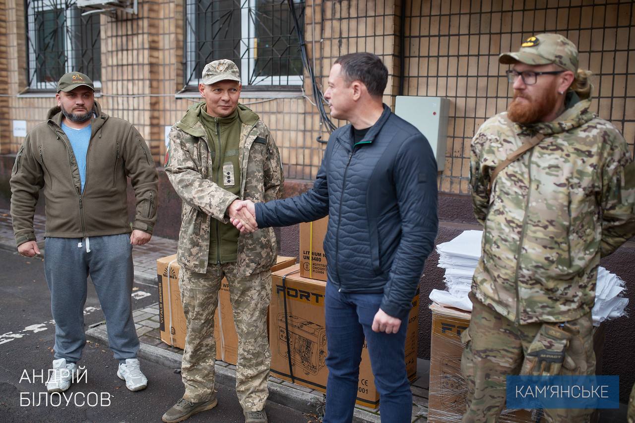 Міський голова Камʼянського разом з представниками громадської організації «Бджола» передали три генератори та зарядну станцію військовослужбовцям з Кам’янського, які виконують бойові завдання на Донецькому напрямку.