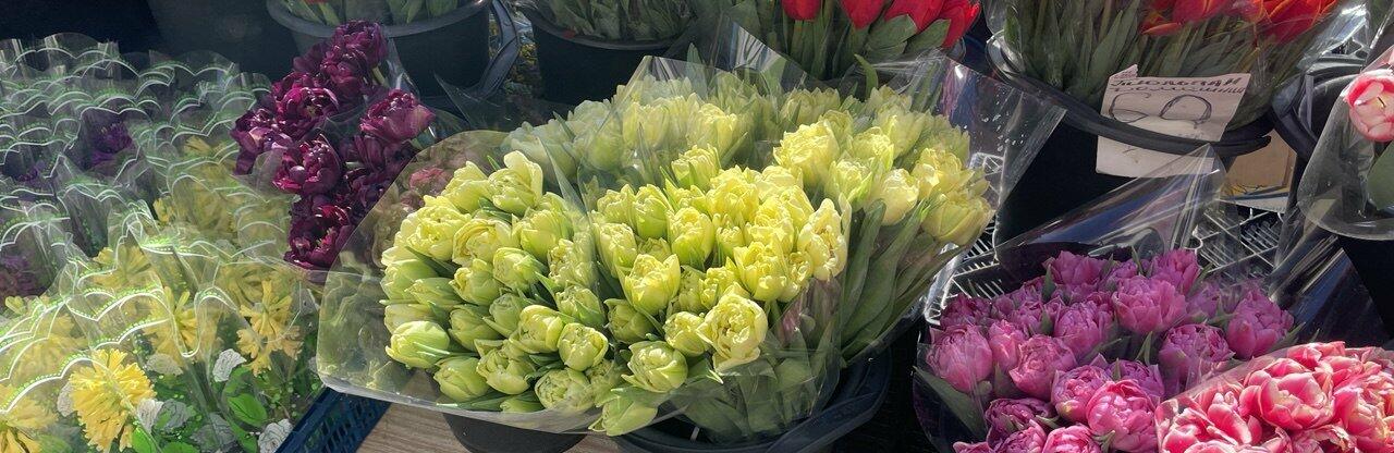 В магазинах, на ринках і навіть на тротуарах Дніпра з'явились квіти: троянди, мімозу, нарциси, гіацинти та орхідеї. Та найбільше заполонили прилавки тюльпани.