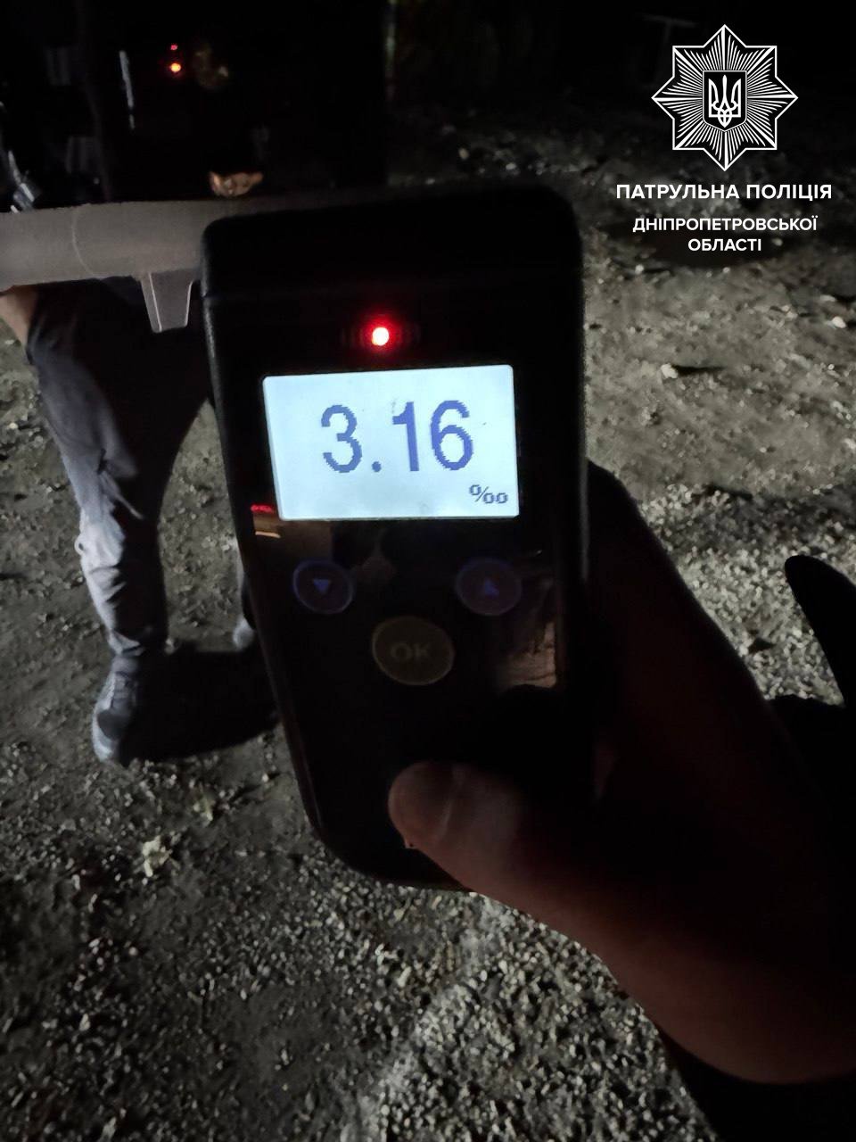 - Самарський район: Водія ВАЗ зупинили після опівночі. Результат освідування за допомогою Драгера показав 3,16 проміле алкоголю.