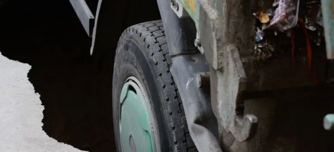 У середу, 18 березня, на Набережній Перемоги біля будинку №76 утворилося велике провалля, у яке провалився сміттєвоз комунальних служб.