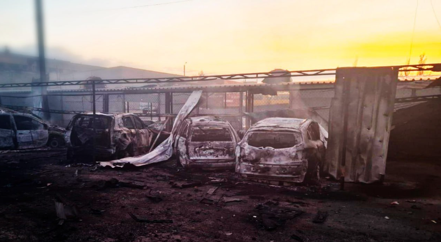 На парковці цивільні автівки перетворилися на металобрухт.
