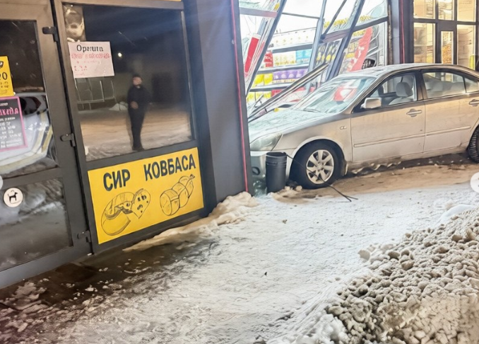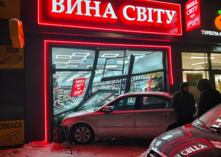Вчора ввечері у Підгородному автівка врізалася у вітрину магазина “Вина світу” та розтрощила його.