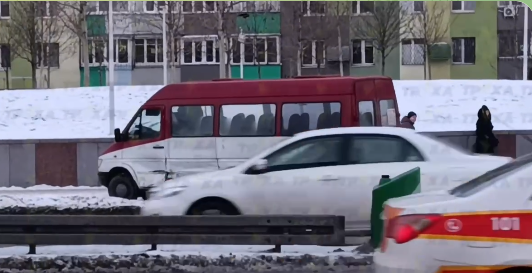 На перехресті просп. Слобожанського та вул. Богдана Хмельницького. Зіштовхнулась пасажирська маршрутка та «Жигуль».