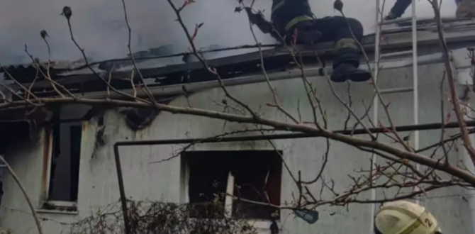 На вулиці Миколи Хвильового загорівся житловий будинок. Потужне полум'я надходило з даху. В диму була вся вулиця.
