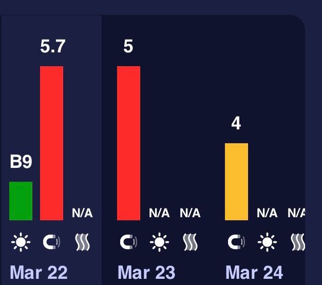 У Дніпрі погіршена геомагнітна обстановка. У неділю, 22 березня потужна магнітна буря, інтенсивність якої сягає майже 6 балів. За прогнозами, геомагнітні збурення триватимуть щонайменше три дні поспіль і можуть впливати на стан людей.