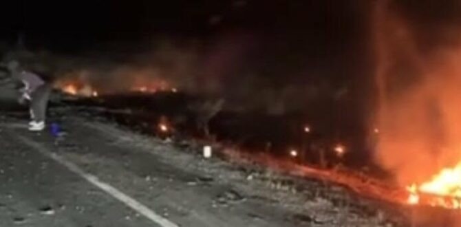 У Дніпропетровській області уламки збитого безпілотника впали на проїжджу частину траси. Гострі металеві фрагменти пошкодили асфальт і спричинили невелику пожежу. За свідченням очевидців, дівчина, що опинилася на місці, самостійно прибирала уламки, щоб звільнити проїзд для автомобілів.
