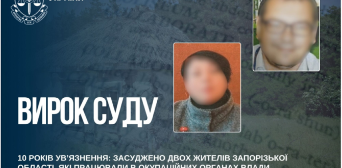 За публічного обвинувачення прокурорів Запорізької окружної прокуратури двох мешканців області визнано винними у колабораційній діяльності. Вирок ухвалено в порядку спеціального судового розгляду.