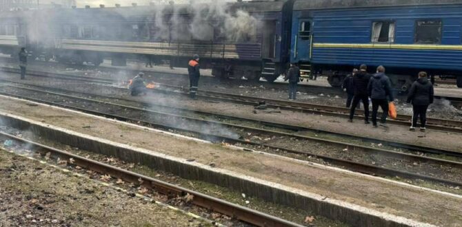 • Під ударами також локомотиви, вантажні вагони та спеціалізована техніка, яка використовується для ремонту інфраструктури.