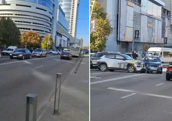 Водій легковика намагався виїхати зі сторони Мост-Сіті та перелаштуватися на смугу до лівого берега. Але не врахував, що там дві суцільних розмітки і зіткнувся з автівкою, що з'їхала з моста.