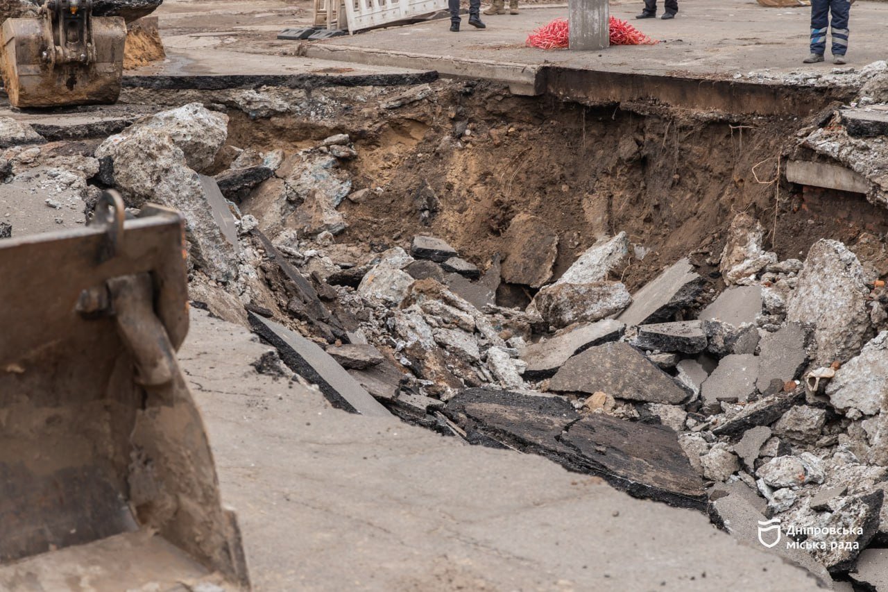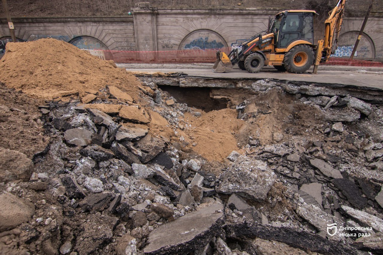 Обвал дорожнього покриття у Дніпрі спричинив пошкодження водогону діаметром 600 мм.