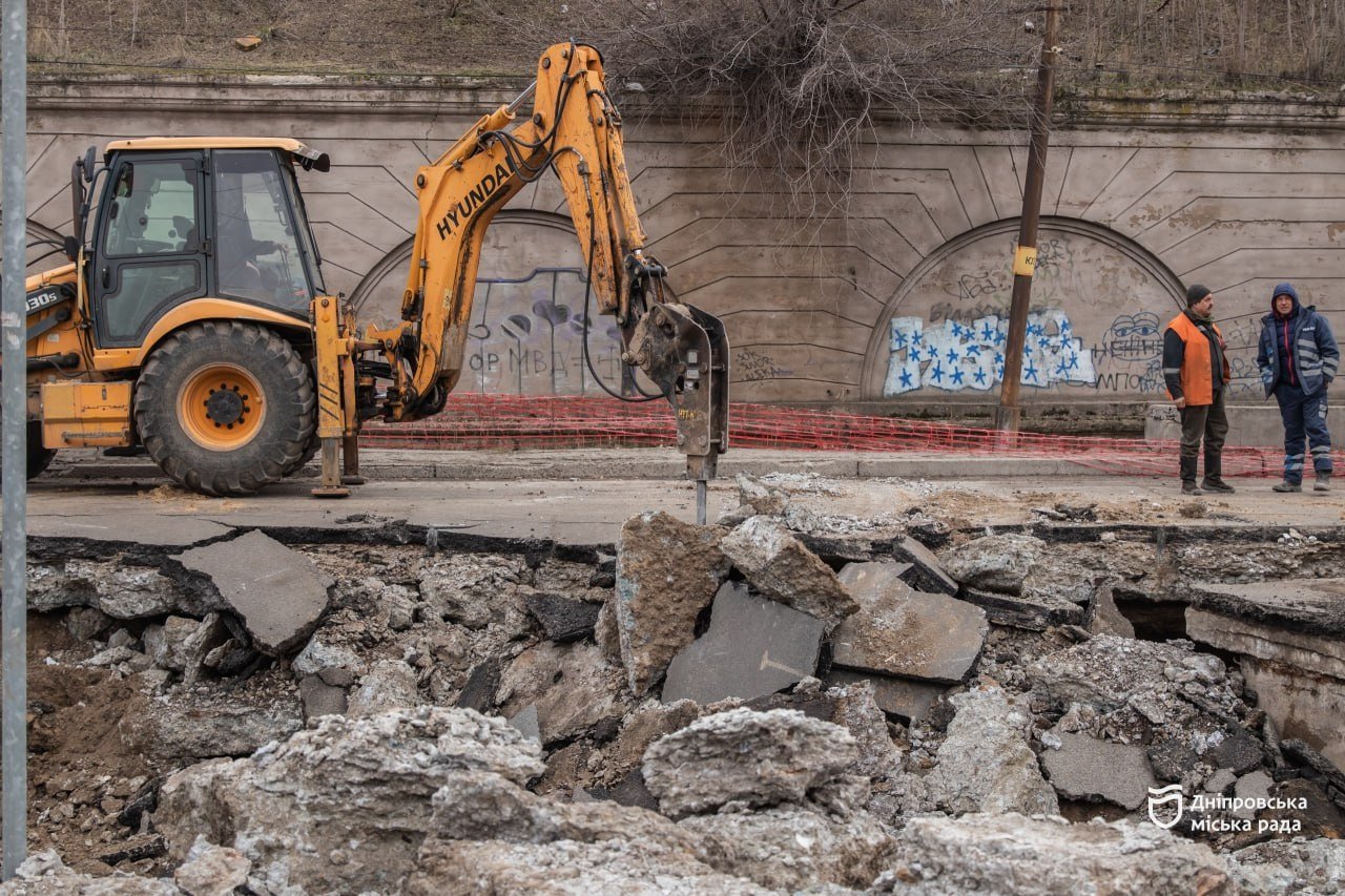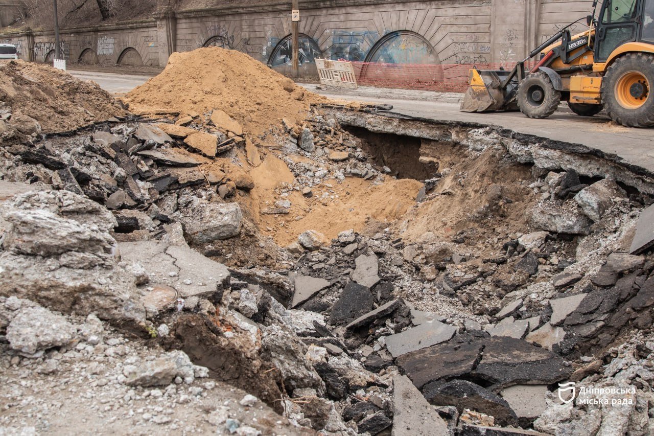 "Аварію було ліквідовано ще учора, 3 березня, ближче до ночі. Зараз виконуємо роботи з повного усунення наслідків провалу – вилучаємо пошкоджені шари асфальту та шлаку, проводимо зворотну засипку з ущільненням і ліквідуємо всі пустоти під дорожнім покриттям", — повідомив начальник інспекції з контролю за ремонтами КП "Дніпроводоканал" Сергій Ченчевич.