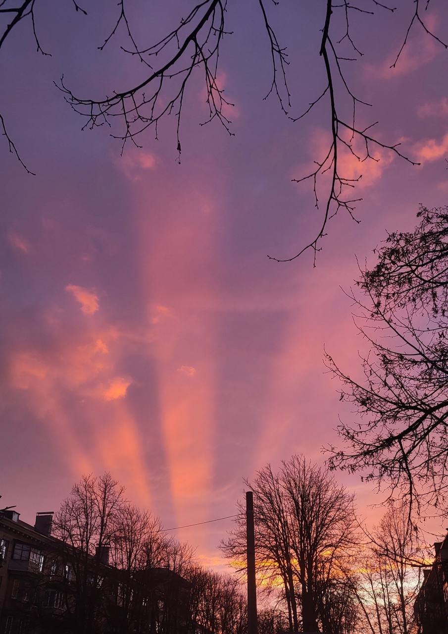 Ввечері 27 березня мережа вибухнула красивими фото вечірнього неба. Воно було рожевим, жовтим та темно-синім.