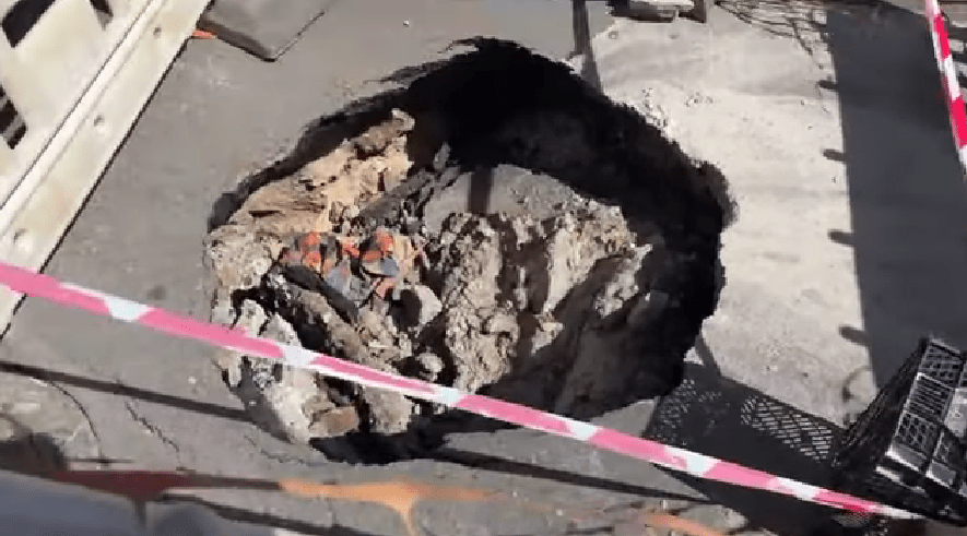 Яму діаметром близько метра зафіксували 27 червня на перехресті Яворницького та Винниченка. Вона утворилася посеред дороги, перед заїздом на платну парковку.