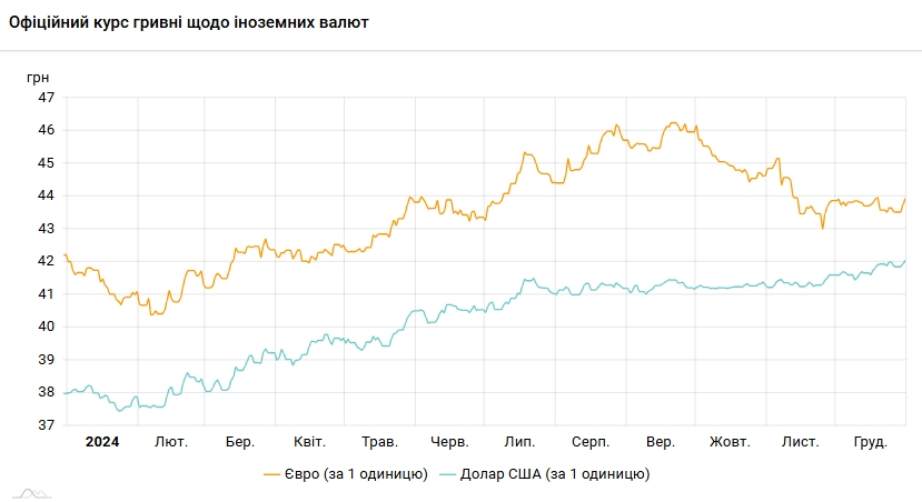 Офіційний курс на 31 грудня 2024 року встановлено на такому рівні: 42,039 гривень за 1 долар (+0,0987 грн).