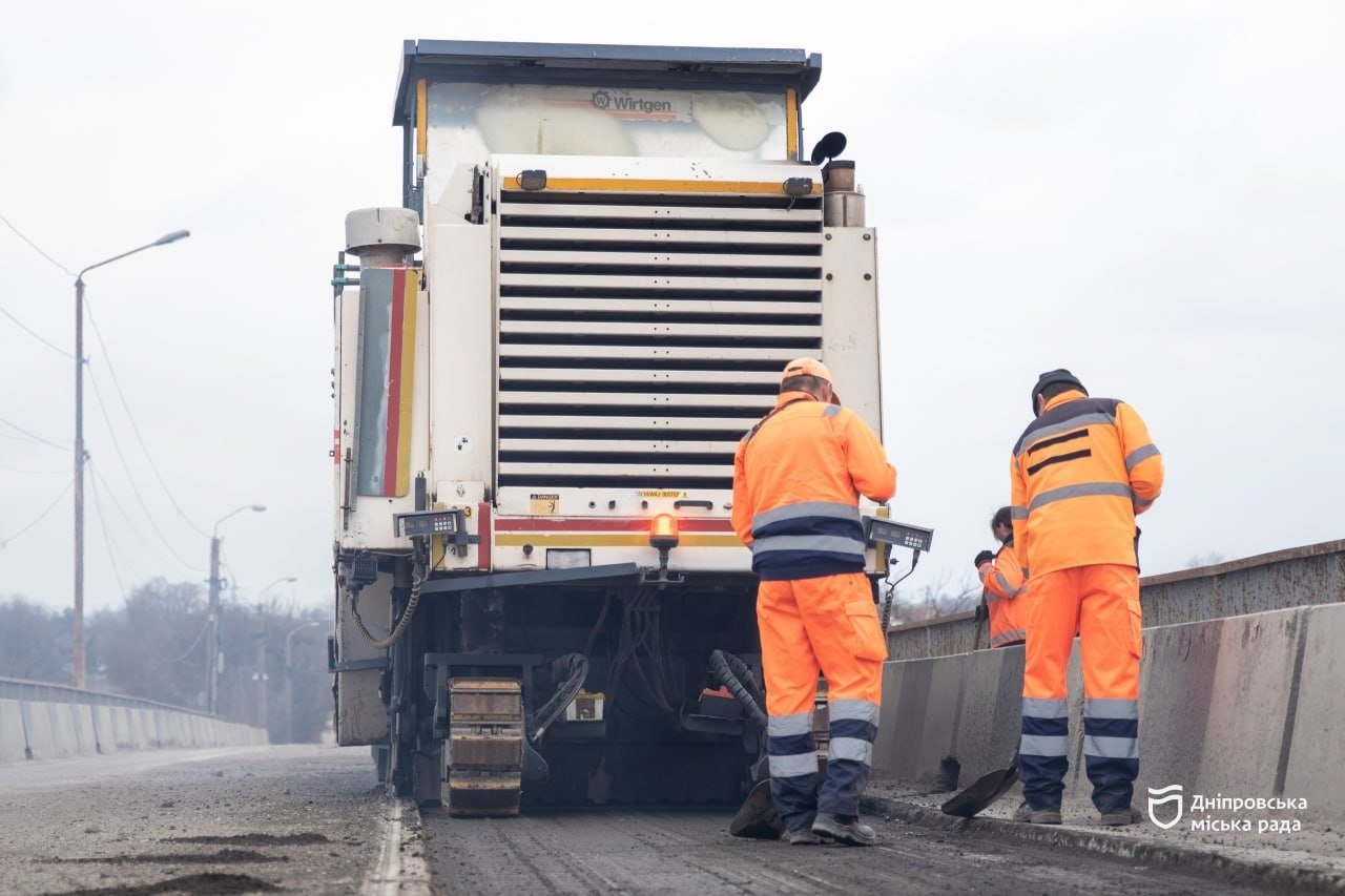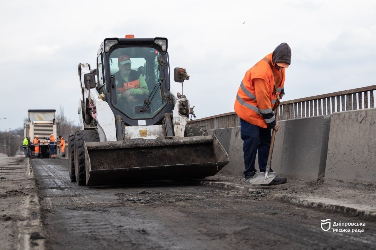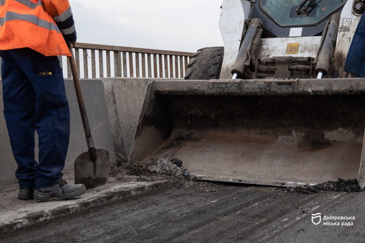 Після зими на Самарському мосту утворилася значна ямковість, яку наразі усувають. На період проведення капітального ремонту з 1 по 9 квітня 2026 року рух транспорту тимчасово перекрито.
