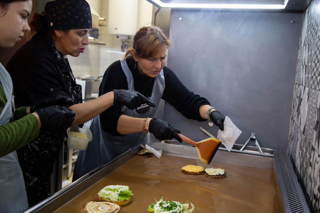 У ресторані «K2» для ветеранів війни та їхніх близьких провели кулінарний майстер-клас. Під керівництвом шеф-кухарки Раїси Джамунян учасники вчилися готувати бургери – від підбору інгредієнтів до збірки та обговорювали перші кроки у власній справі.