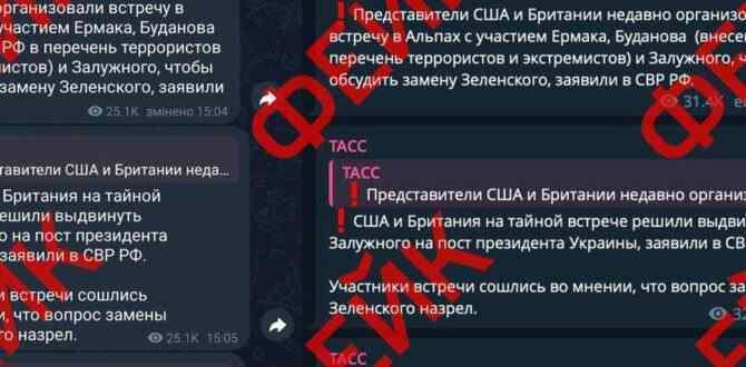 Російські спецслужби для дестабілізації ситуації в Україні запустили фейк про нібито таємну зустріч в Альпах керівника ГУР Кирила Буданова, керівника ОП Андрія Єрмака і нинішнього посла України у Великобританії Валерія Залужного, на якій нібито узгодили «заміну Зеленського».