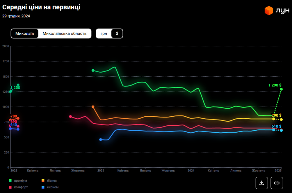 Зміна ціни на нерухомість у новобудовах Миколаєва (скриншот сайту ЛУН)