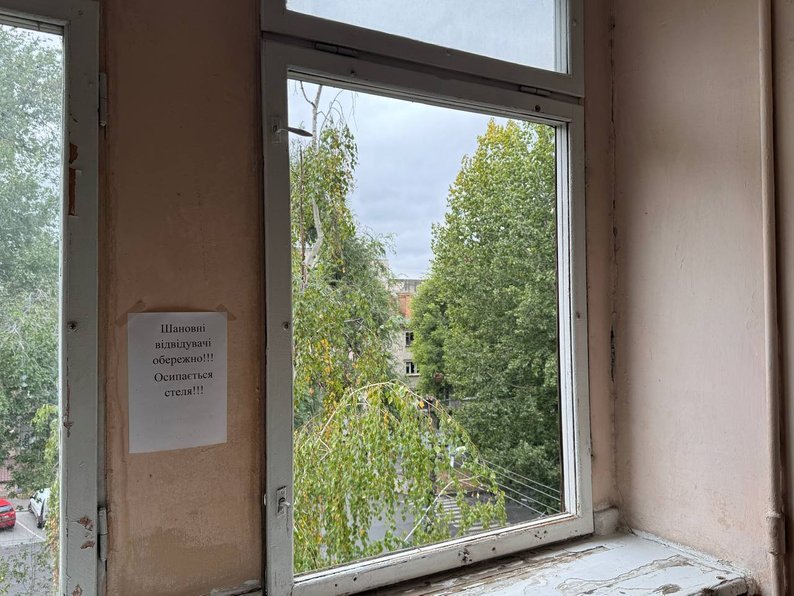 Станом на 1 жовтня лікарня працює у звичайному режимі. Для відвідувачів повісили табличку: "Обережно! Стеля осипається".