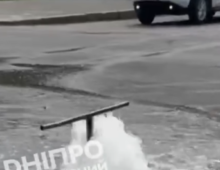 Сьогодні вранці на просп. Науки несподівано виник "фонтан". Вода почала вирувати прямо на дорозі. Це пов'язано з ремонтними роботами КП "Дніпроводоканал".