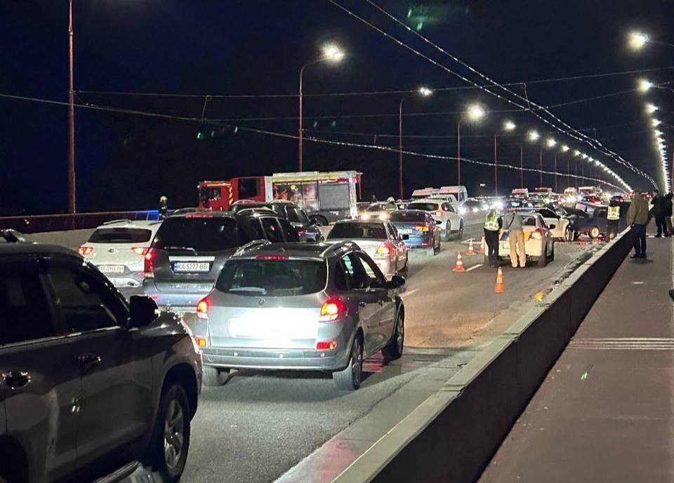 На місці аварії на Новому мосту працюють поліція, медики та рятувальники.