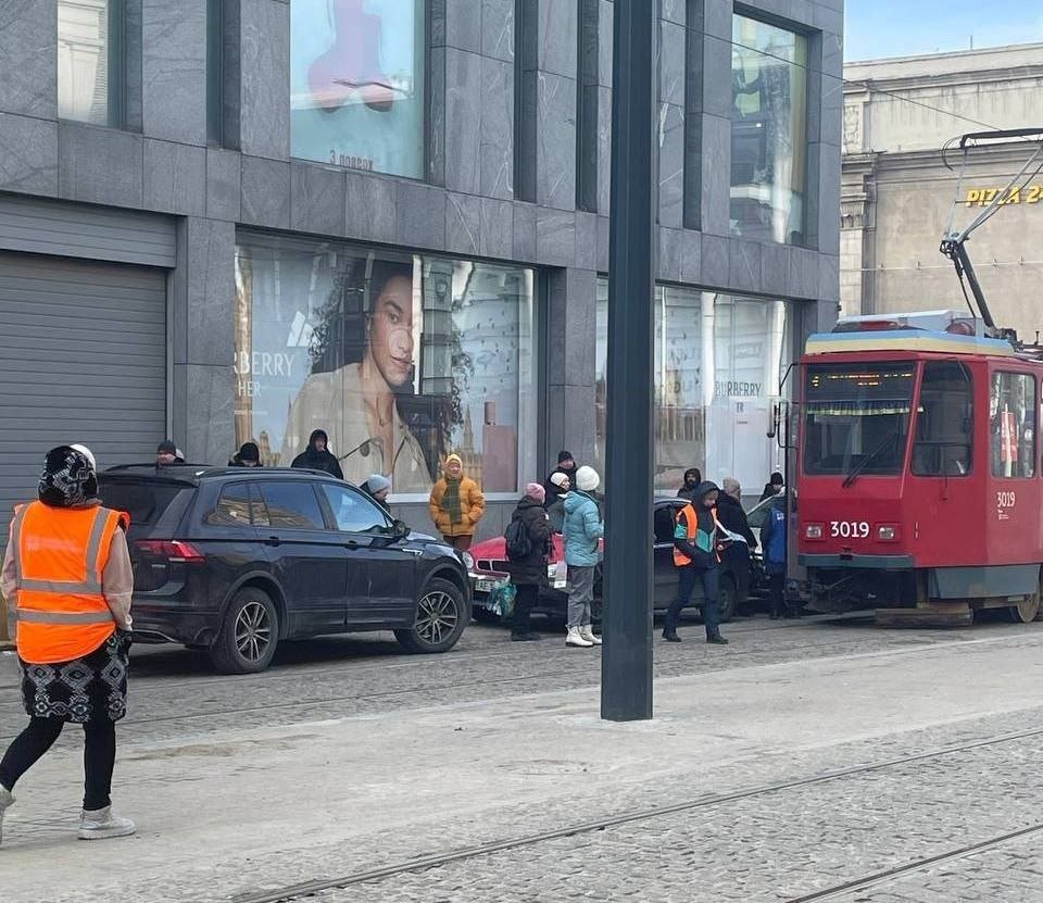 У центрі Дніпра автівки обмежили рух трамваїв.