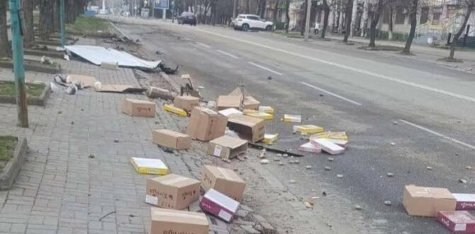 - Частина продукції була знищена або пошкоджена внаслідок вибуху та падіння на дорогу.
