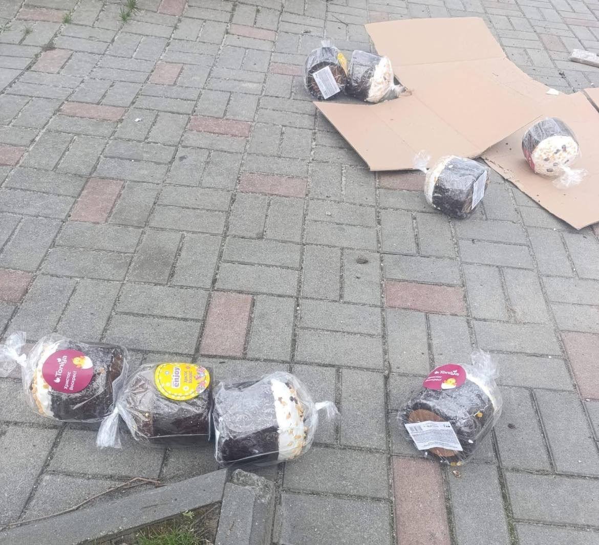 - Вантаж — великодні паски — опинився розкиданим по проїжджій частині.