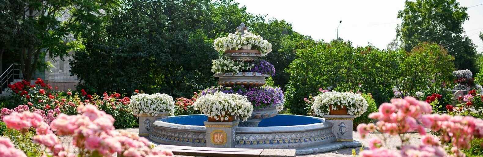У Слобожанському пишно розцвіли різноманітні квіти: троянди, лаванди. Але найефектніше виглядять петунії та сульфінії. Вони на клумбах, зупинках, у фонтані, навіть створили з них дерева.