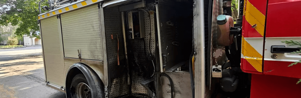 Війська рф вдарили FPV-дроном. Унаслідок влучання пошкоджено пожежно-рятувальний автомобіль.