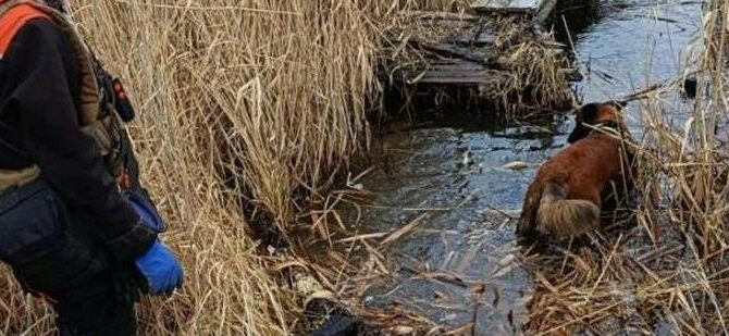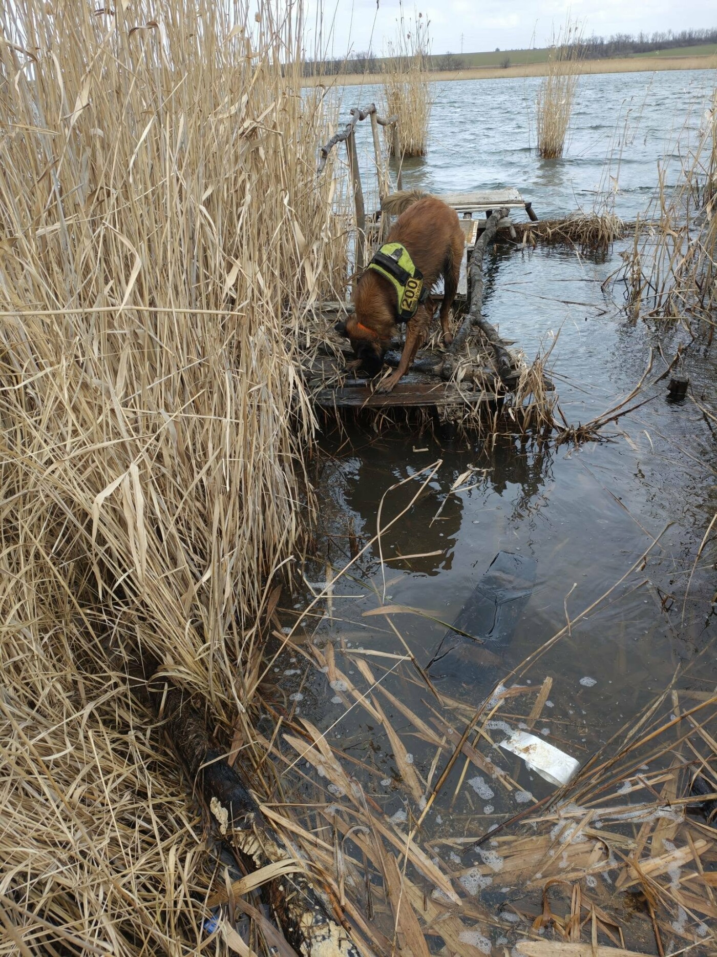 Під час пошуків вівчарка Мара почула запах, почала метатися та стрімко рвонула в жахливий щільний очерет. Спочатку вона на живу людину – рибалку. Але знов через очерет, по воді та багнюці продовжився пошук. Знайшли, пройшовши ще метрів за 80.