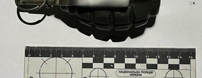 На місце подій виїхала слідчо-оперативна група, яка встановила особу правопорушника та затримала його. Під час огляду поліцейські вилучили гранату Ф-1 та запал УЗРГМ, які направлено на експертизу.