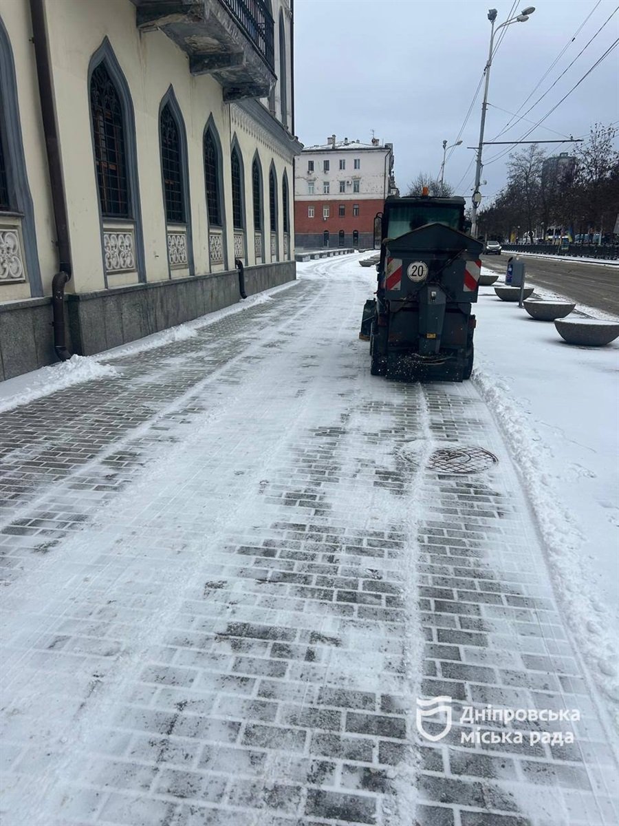 Сьогодні у Дніпрі прокинулася зима – засніжило дороги й тротуари, але комунальники протистоять негоді.