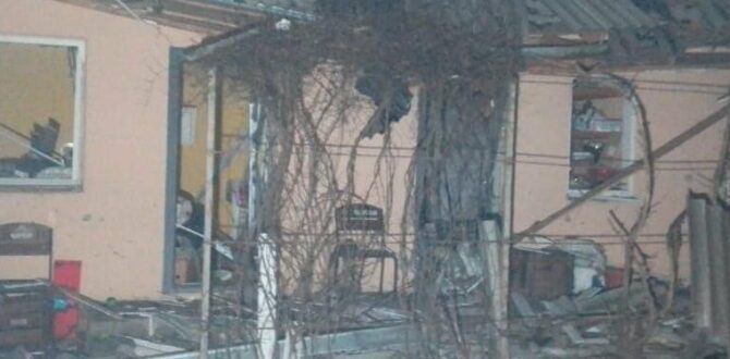 • Пошкоджені ліцей, 2 приватні будинки, авто, газогони.