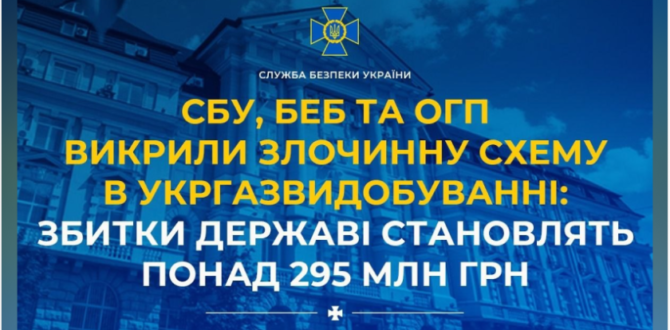 Служба безпеки України, Бюро економічної безпеки та Офіс Генерального прокурора викрили масштабну злочинну схему у сфері видобутку природного газу, яка завдала державі збитків на понад 295 млн гривень.