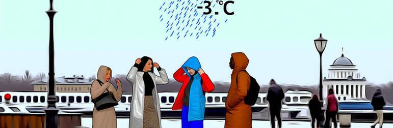 О 18:00 температура підніметься до +3,5 °C, але з'явиться невеликий дощ. Вологість зросте до 97%, а вітер зменшить свою швидкість до 3 м/с. Це може призвести до ще більшої прохолоди, тому рекомендуємо одягатися тепліше, якщо плануєте прогулянки на вулиці.