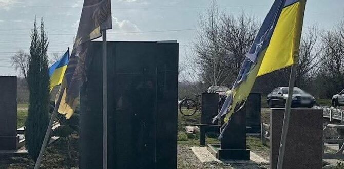 - Дії зловмисника: розбиті пам’ятники, знята плитка та хрести, порвані прапори