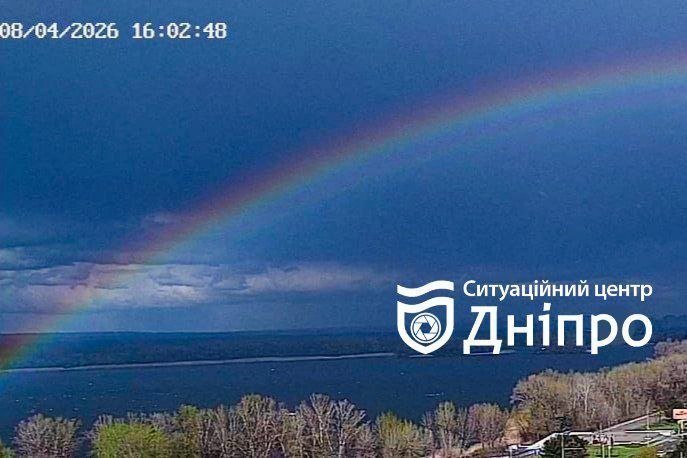 Це одна із перших весняних веселок в цьому році. На фото її зафіксували камери Ситуаційного центру Дніпра.