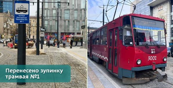 З 27 листопада перенесено зупинку трамвая №1 на вул. Центральній у напрямку Університету науки і технологій. Тепер вона біля ЦУМу, з боку входу до McDonald’s.