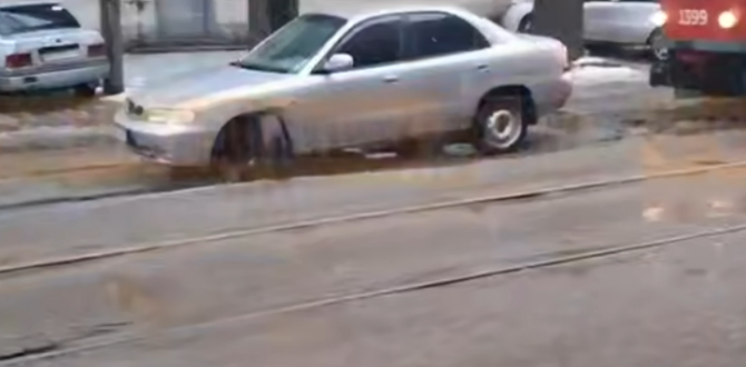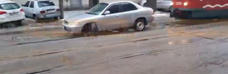 Близько 16:20 по вулиці Архитектора Петрова у автівки вивернуло колесо, коли вона переїжджала колії. Через це вона застрала.