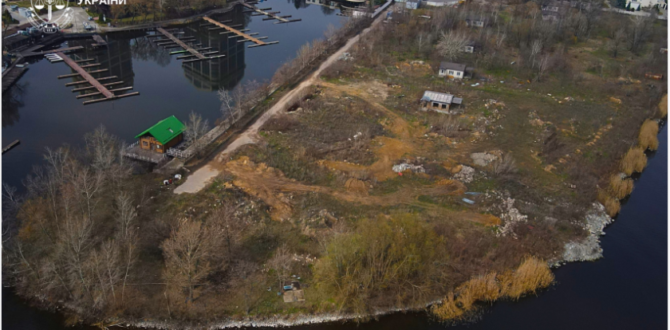 Йдеться про ділянку площею 3,4 гектара вартістю понад 170 млн гривень, розташовану в межах водоохоронної зони річки Дніпро. Територія фактично є півостровом, оточеним водою з трьох сторін.