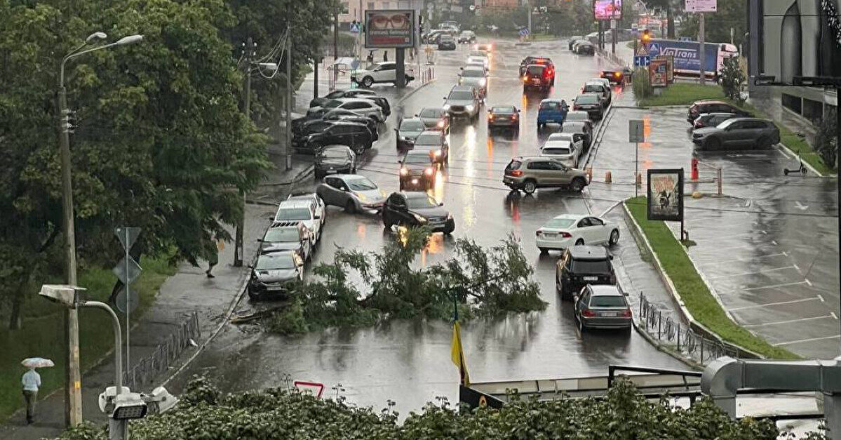 У Києві надвечір 6 серпня розпочалась раптова злива. У різних районах міста вже фіксують сильний дощ та пориви вітру.У кількох районах міста стрімко почалась злива, місцями з поривами вітру. Подекуди негода повалила дерева, що призвело до ускладнень на дорогах.Мешканців просять бути обережними, не ховатися під деревами й уникати пересування без нагальної потреби.Зауважимо, що ще вчора українців попереджали, що 6 серпня у Києві та області очікуються грози, град та шквали. Через негоду оголошено штормове попередження.Варто додати, що такі погодні умови можуть ускладнити роботу енергетичних, будівельних та комунальних підприємств, а також рух транспорту.У зв'язку з погіршенням погодних умов відбудуться деякі зміни в русі транспорту.Як повідомив Київпастранс, затримується рух тролейбусів № 43 та № 43К по бульвару Міхновського з причини скупчення води.Що робити під час негодиЗауважимо, що під час грози варто уникати місць поблизу рекламних щитів, ліній електропередачі, великих дерев і не паркувати поруч із ними автотранспорт.Куди звертатись за допомогою:При підтопленні проїжджої частини чи тротуарів необхідно звертатися до диспетчерської КК "Київавтодор": 0442847419.Якщо впало дерево чи зламалися гілки, телефонуйте до аварійно-диспетчерської служби КО "Київзеленбуд": 0442724018.Коли падіння дерев і гілок загрожує життю, звертайтесь до рятувальників за номерами: 101 або 0444303713 (телефон КАРС).При травмуванні людей негайно телефонуйте 103.При несправності світлофорних об’єктів чи дорожніх знаків телефонуйте за номерами: 0503873542 (телефон ЦОДР).