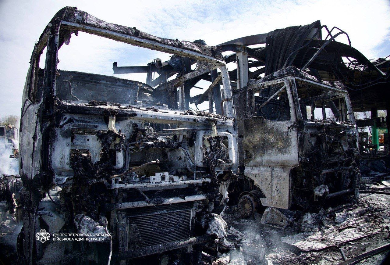 "Шахед" знищив вантажівки й легковики на АЗС у Дніпрі.