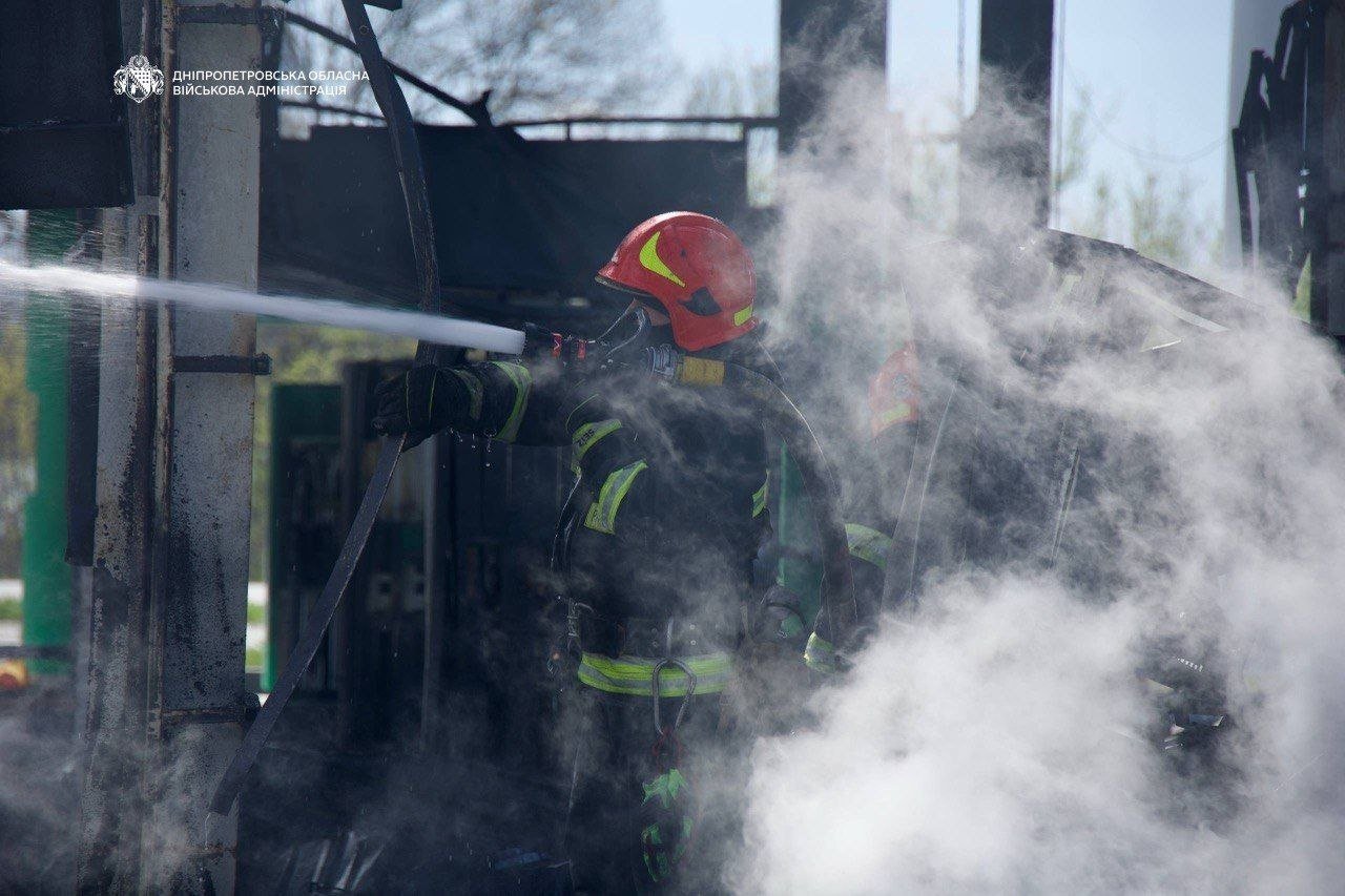 Рятувальники загасили пожежу на АЗС у Дніпрі, яка виникла через ворожу атаку сьогодні вранці. Про це повідомляє Дніпропетровська військова адміністрація.